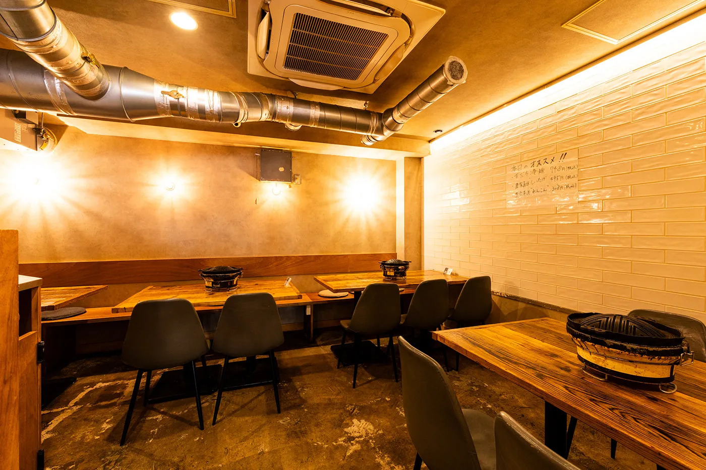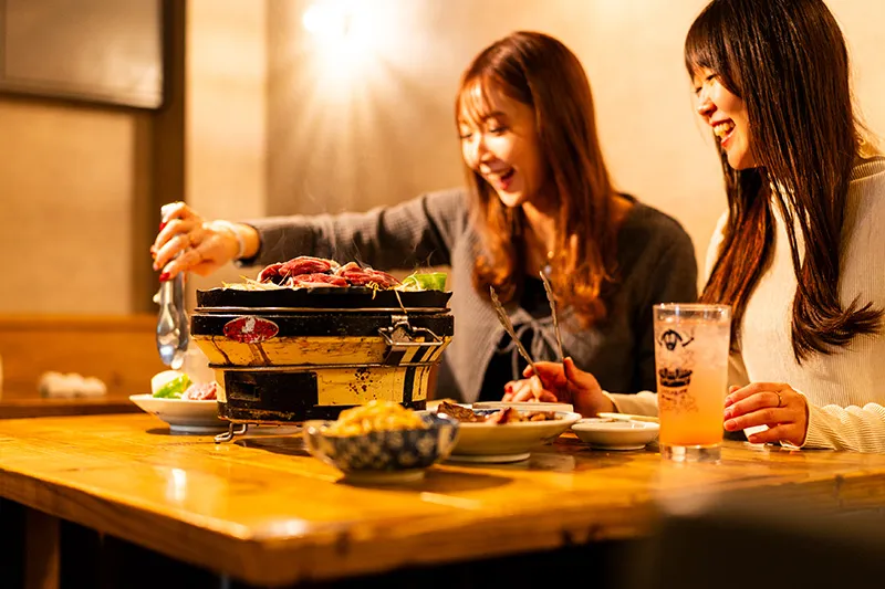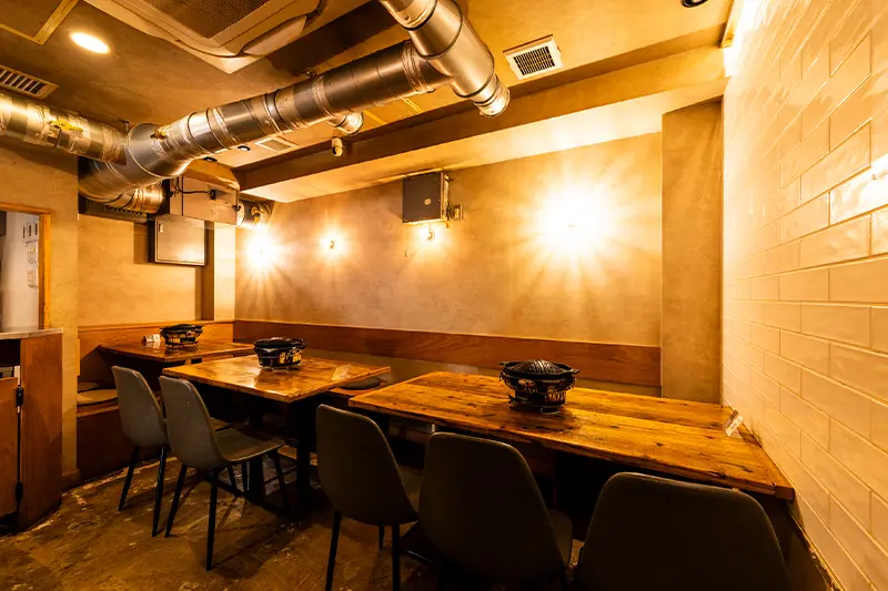 カフェのようなスタイリッシュな店内で、本格ジンギスカンをカジュアルに楽しめるテーブル席をご用意。